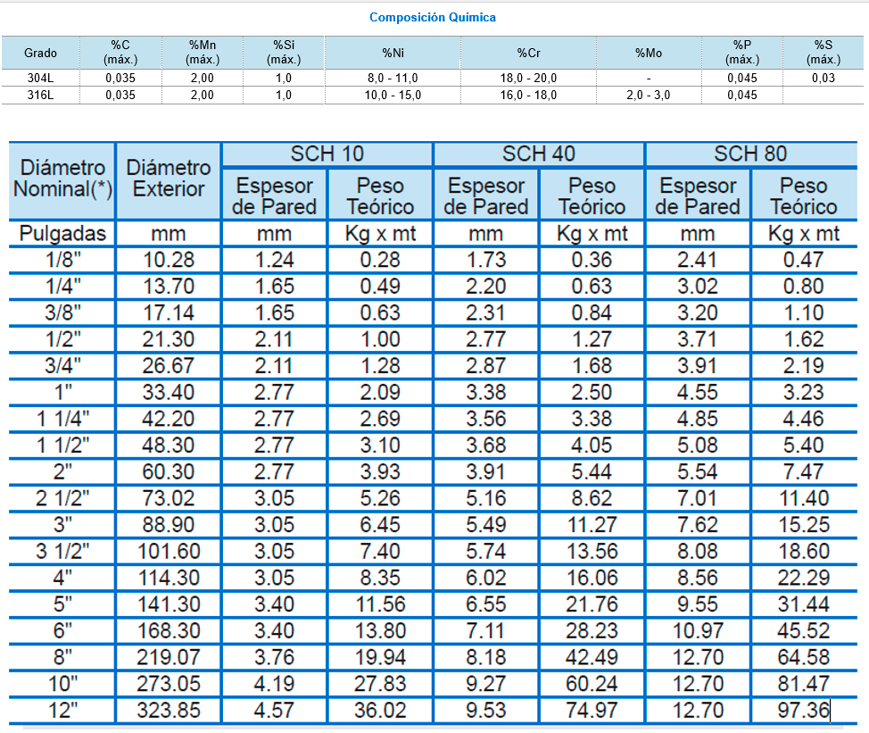 Cañerías con y sin costura fabricadas bajo norma ASTM A312. Aplicaciones Producto de uso Industrial, para la conducción de fluidos químicos o corrosivos. Es utilizado por la industria química, petroquímica, minera y de la celulosa, entre otras. |