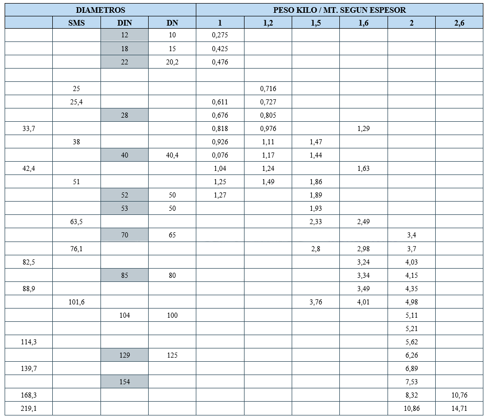 Tubos de Acero Inoxidable AISI 304L – 316L, Para la Industria de Alimentos | |